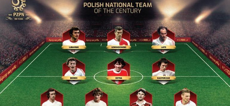Bramkarz Józef Młynarczyk, obrońcy Łukasz Piszczek, Władysław Żmuda, Jerzy Gorgoń i Antoni Szymanowski, pomocnicy Henryk Kasperczak, Kazimierz Deyna i Zbigniew Boniek oraz napastnicy Grzegorz Lato, Robert Lewandowski i Włodzimierz Lubański - to jedenastka stulecia PZPN.