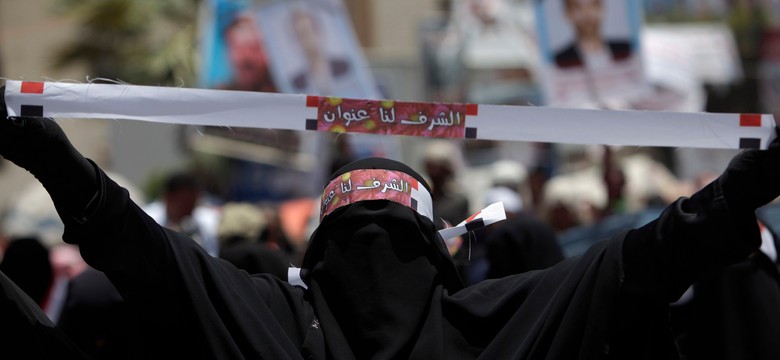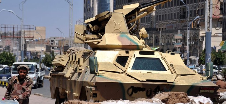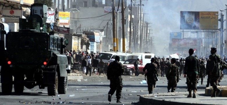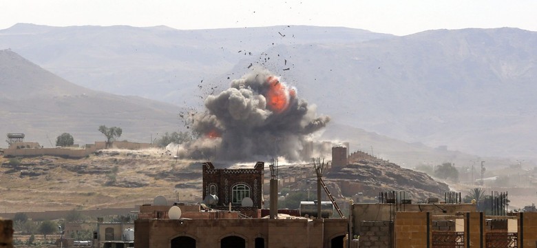 Arabskie naloty na zbuntowane starożytne miasto Sana. Budynki legły w gruzach